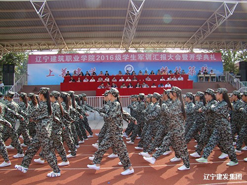 9月14日上午9点,辽宁建筑职业学院2016级学生军训汇报大会暨开学典礼在雄伟宽阔的学院中心体育场举行。学院党委书记刘长新首先徒步检阅了全体新生。这些来自全国各地的莘莘学子穿着整洁,在各班教官的引领下,迈着整齐的步伐,气宇轩昂地依次通过大会主席台,接受校领导及来宾检阅。